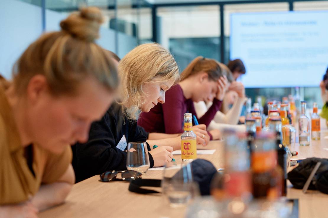 Anschließend konnten die Alumni:ae an einem von drei Workshops teilnehmen: Silvia Niersbach, Dissertation Plus-Alumna, arbeitete mit den Teilnehmenden kreativ zur Frage, wie Care-Arbeit und Erwerbsarbeit in einer perfekten Welt miteinander vereinbart werden könnten. Master Plus-Alumnus und Startup-Unternehmer Malik Voß gab das Motto aus: "Manage your energy, not your time!". Und der Regisseur und stART.up-Alumnus Ron Zimmering gestaltete einen Workshop zum Thema Shared Leadership.