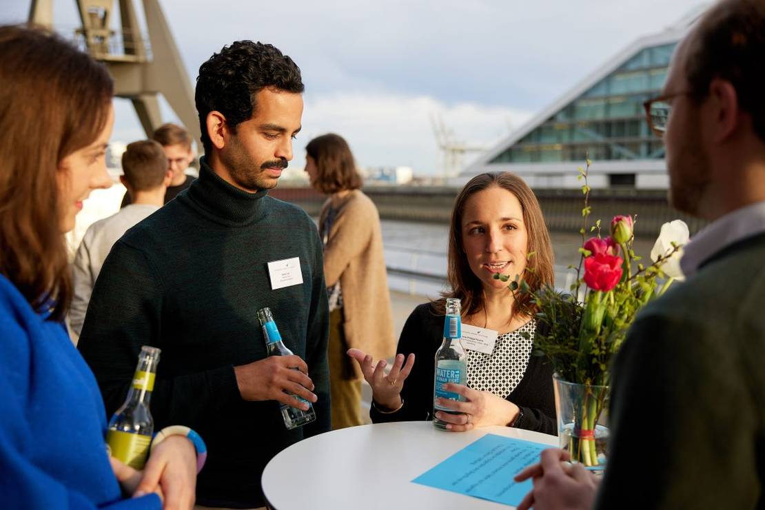 Bei schönsten Frühlingswetter begann das Alumni:aetreffen mit einer alternativen Hafenrundfahrt: Mit Blick auf große Containerschiffe, die Hafencity und die Baustelle des Elbtowers wurden Themen angesprochen wie Stadtentwicklung, die Rolle von Schiffen in der Logistik sowie die gesellschaftliche und politische Bedeutung des Hafens. Mit Schwung ging es nach der Barkassenfahrt in den Abend: Drei ehemalige stART.up-Stipendiat:innen, Joël, Marie und Lydia eröffneten den Abend mit Seemannsliedern und Akkordeonmusik. Mit Pizza, Getränken und Gesprächen klang der Abend aus.