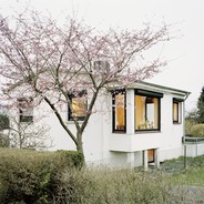 Prinzipiell haben wir die fotografischen Elemente der Arbeit in zwei Gruppen eingeteilt: Außenaufnahmen und Interieurs: Die Außenaufnahmen sind sachlich dokumentarisch, zeigen verschiedene Häusertypen, und ihnen ist die stetige Weiterentwicklung über die Jahrzehnte anzusehen. Es ist fast schon eine typisch deutsche Typologie, in Richtung Bernd und Hilla Becher, nur in Farbe und auch mal mit etwas dynamischeren Perspektiven und unterschiedlichen Lichtsituationen. Dennoch scheint es mehr um die Häuser, als um die Fotografie der Häuser zu gehen.